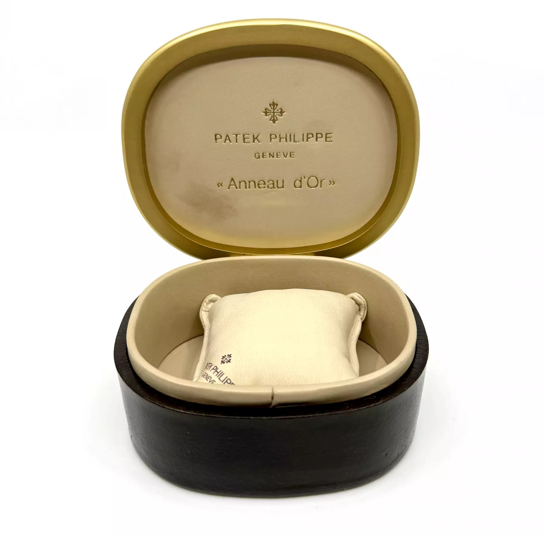 Patek Philippe rare Box Anneau d'Or | inside smooth leather / outside matt gold Ring | with Patek Philippe Cushion | very good Condition. Price includes 19% VAT! This item is directly available.
