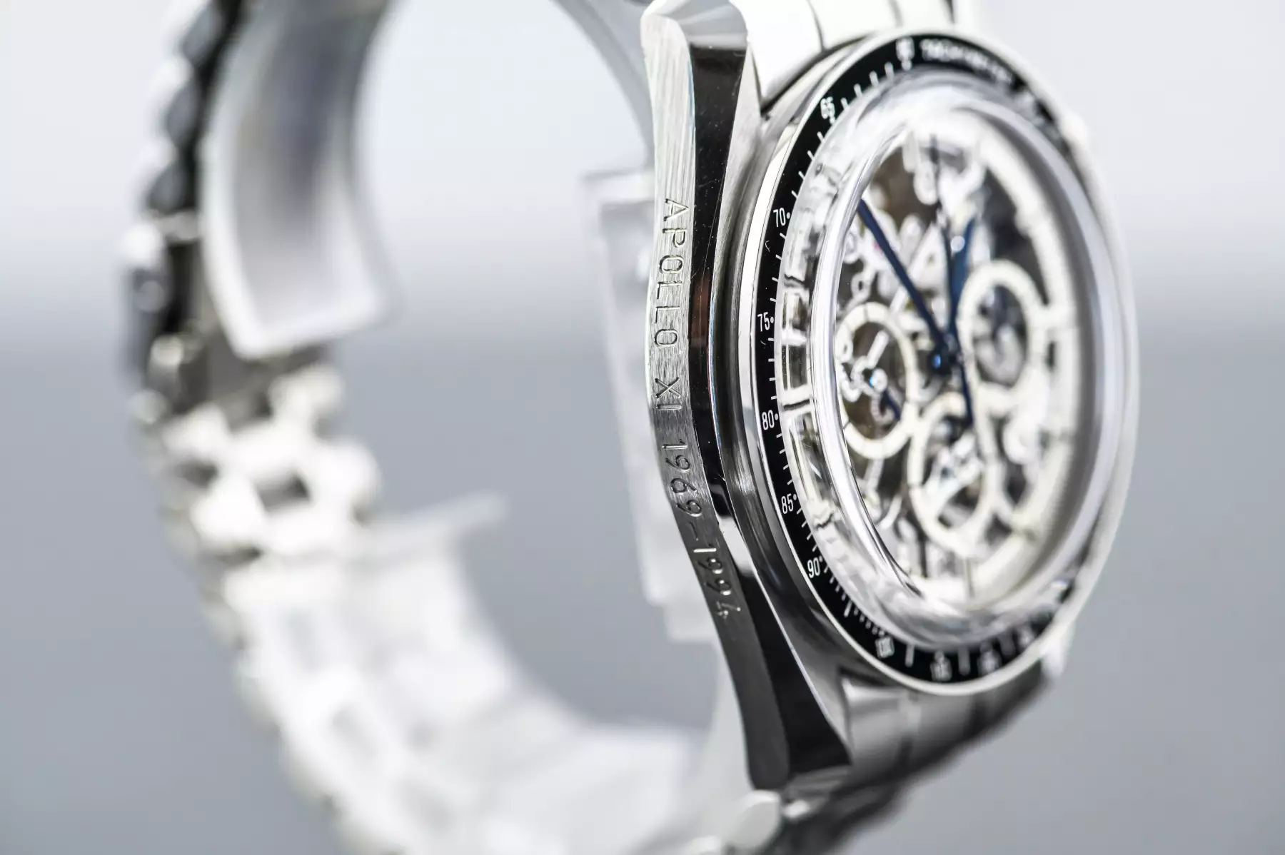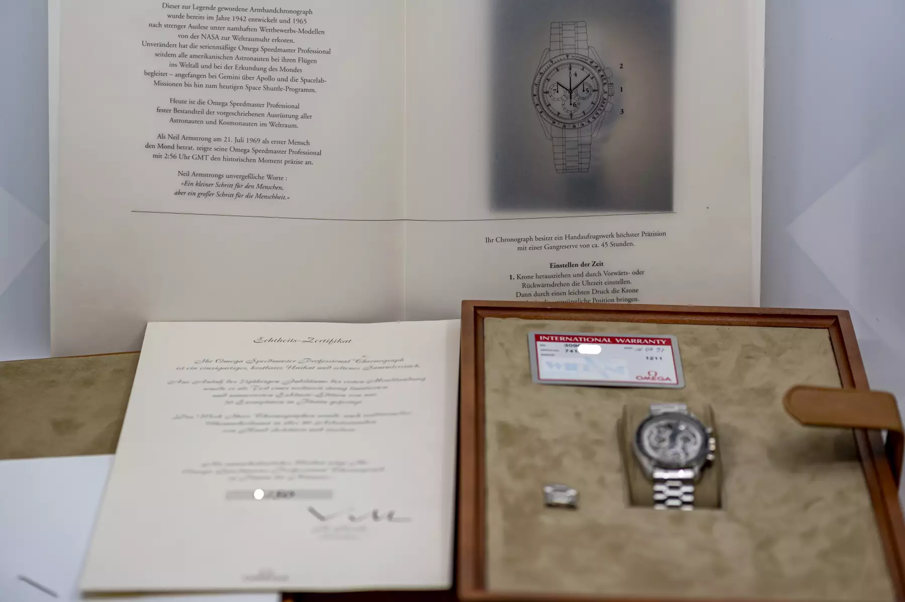 Extremely limited edition of only 50 pieces of which only 10 are produced with a platinum bracelet and without diamond setting. This limited edition model was produced to celebrate the 25th anniversary of the Apollo 11 space mission and the successful moon landing in 1969. This Omega has the limitation number 4 of 50, making it the only watch to be delivered in Germany!
