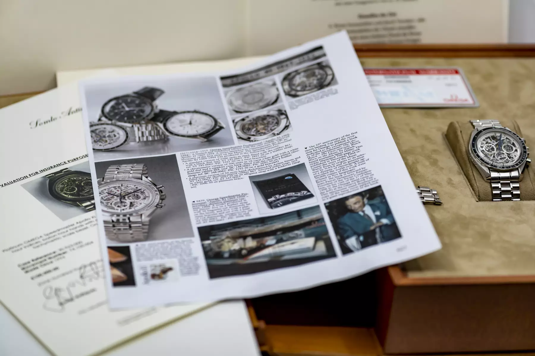 Not only the watch itself but the whole package is a reason for joy, because enclosed is the original Omega leather box in book form with outer carton - the Omega certificate of authenticity & limitation - the Omega warranty card (sold in July 1997) - the instruction manual as parchment - the original catalog clipping about this model.