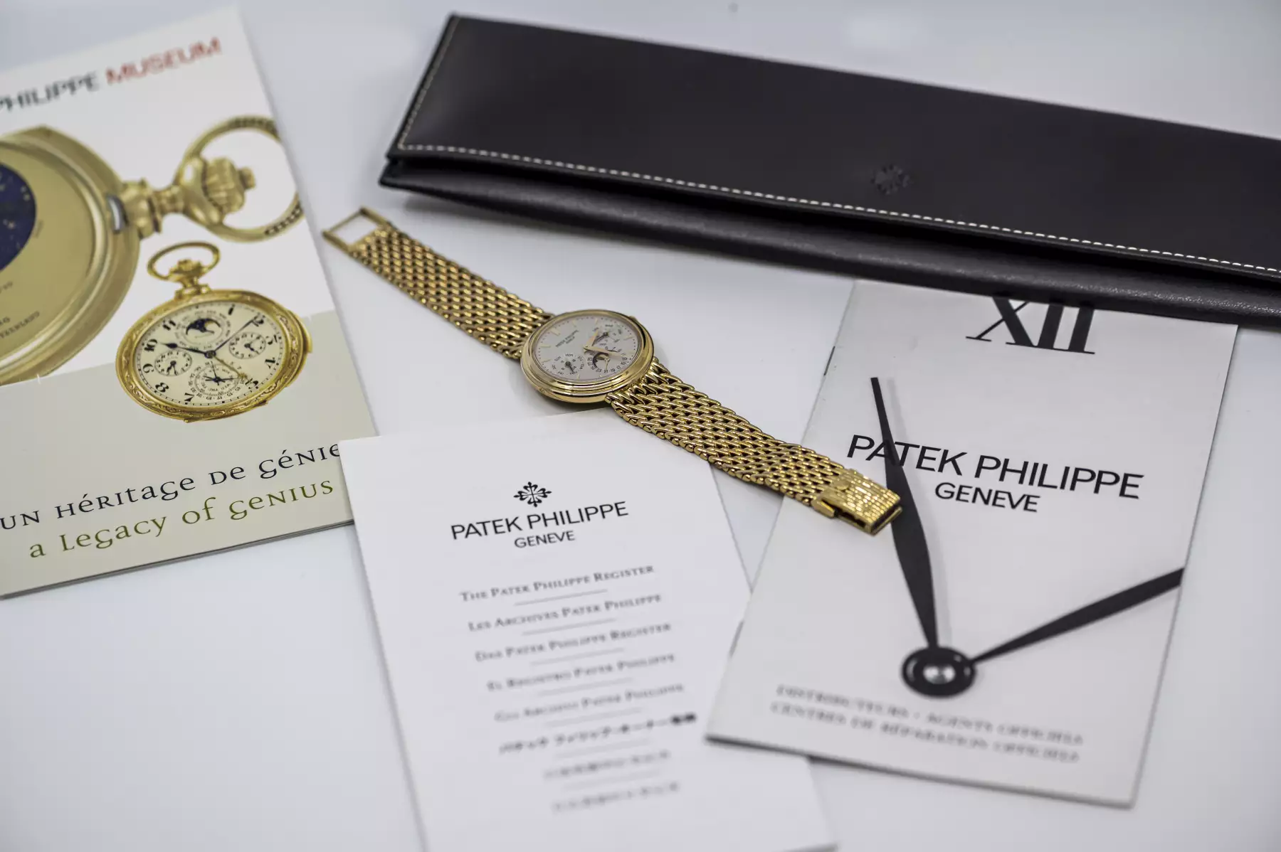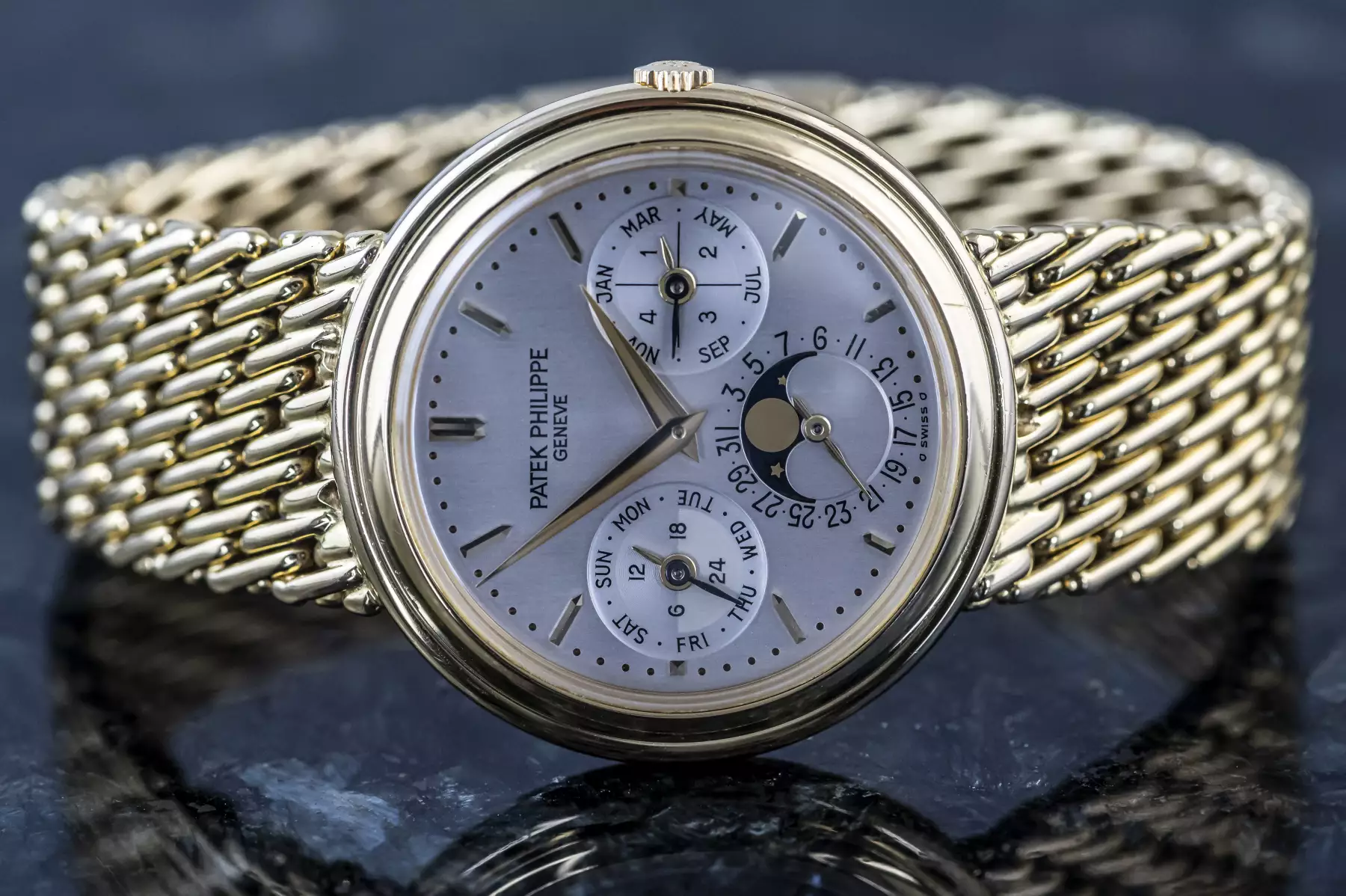 Beautiful Patek Philippe Calatrava perpetual calendar with the reference 3945/1J-011 (with gold bracelet 3940) in 18k yellow gold.