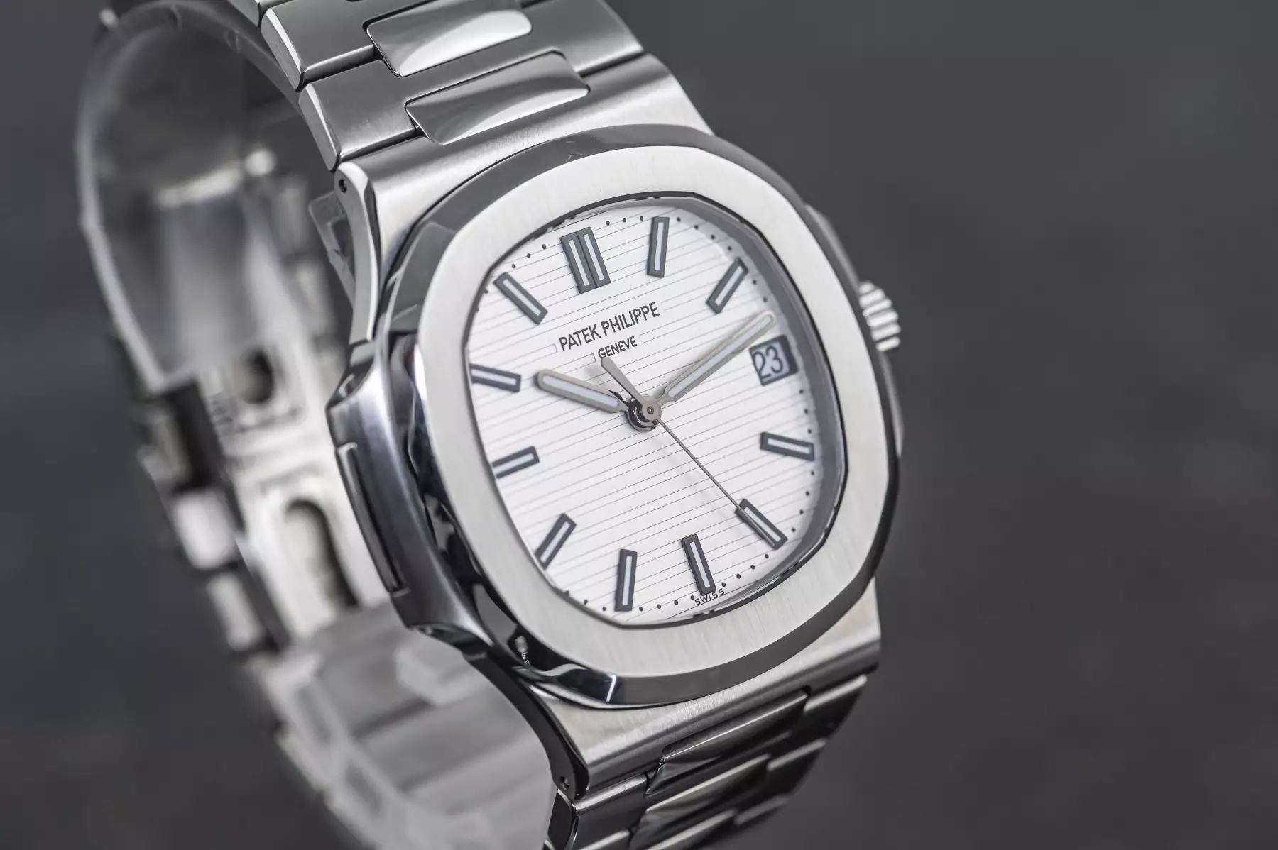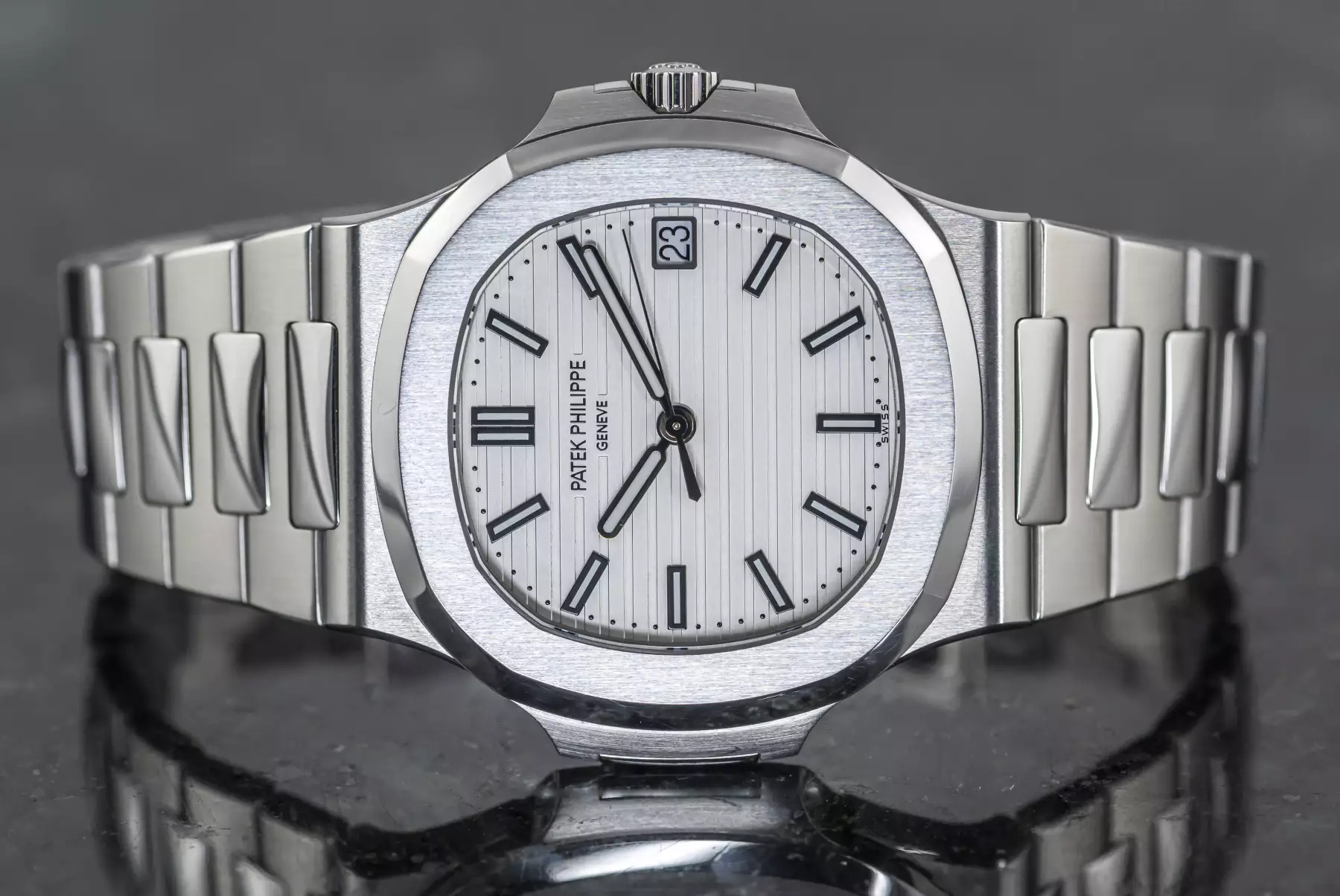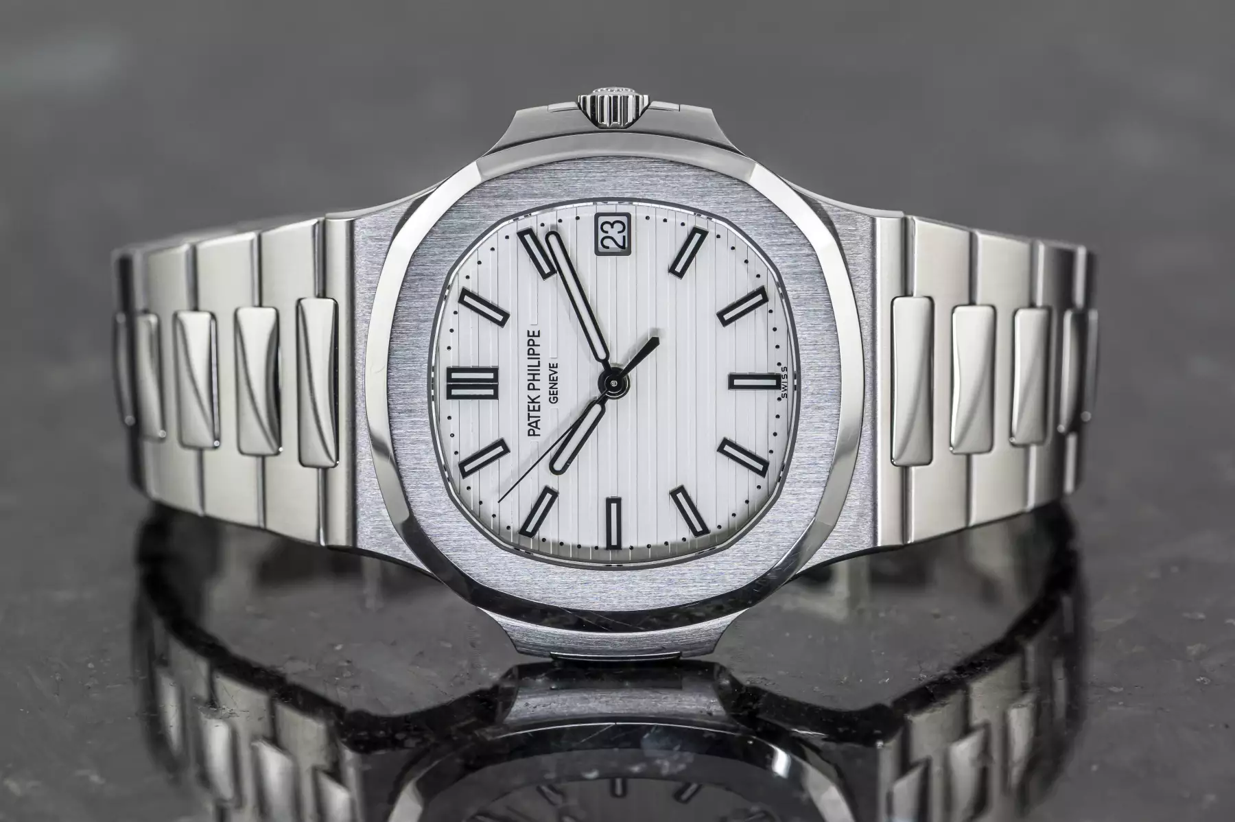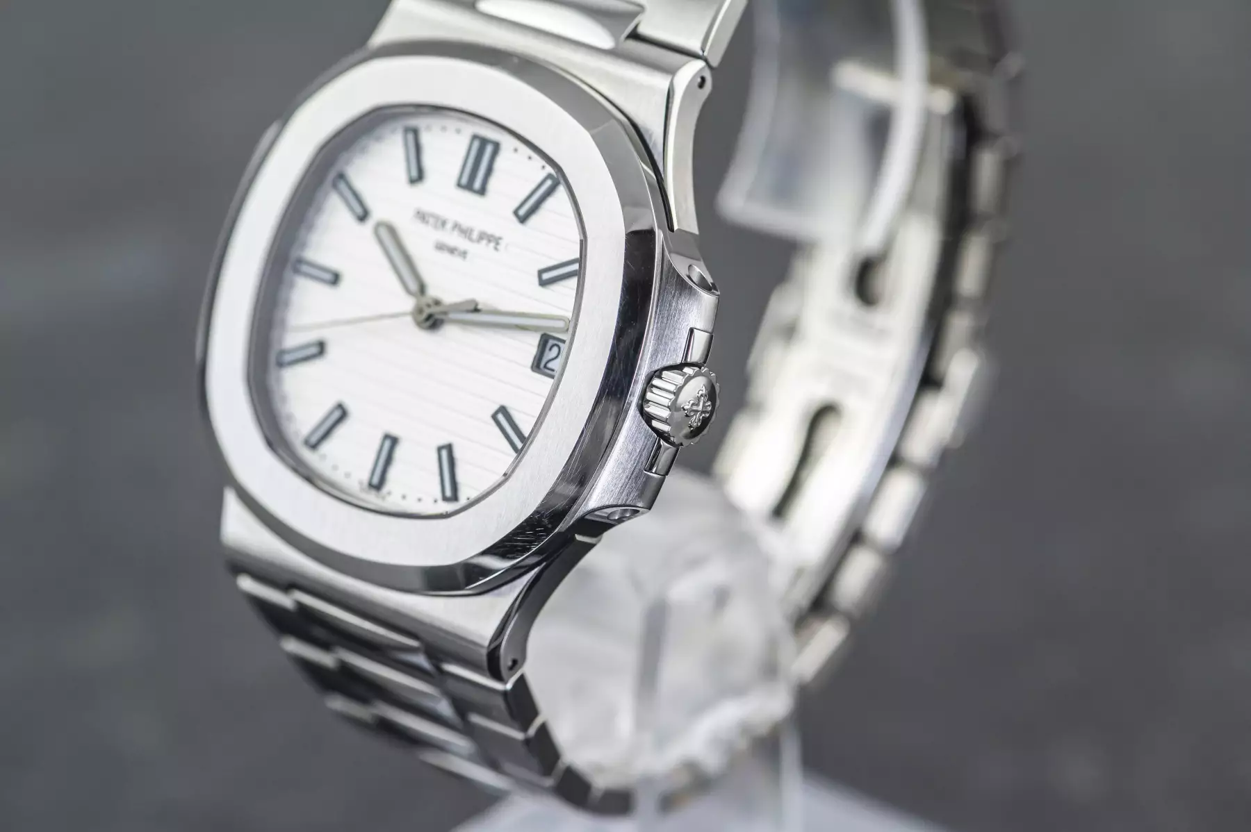 Amazing Patek Philippe Jumbo Nautilus white dial with the reference 5711/1A-011 in steel. This Patek has the original PP steel bracelet with a double folding clasp.