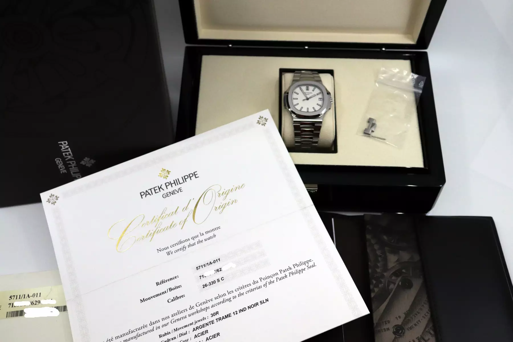 What makes this watch so special is the Patek automatic caliber 26-330 SC with central second & date. In the 5711 this calibre was only used for the last version, in the ones with the white dial only 6 months!